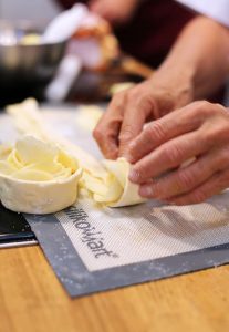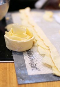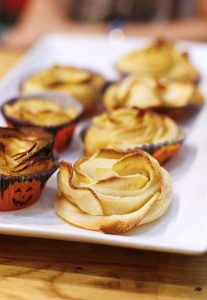 Os proponemos hacer estas flores con masa de hojaldre y manzana que enseñamos en uno de nuestros talleres de BCN&Cake el pasado mes de Septiembre.