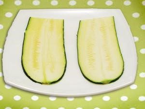 -Lava los calabacines y córtalos por la mitad a lo largo.